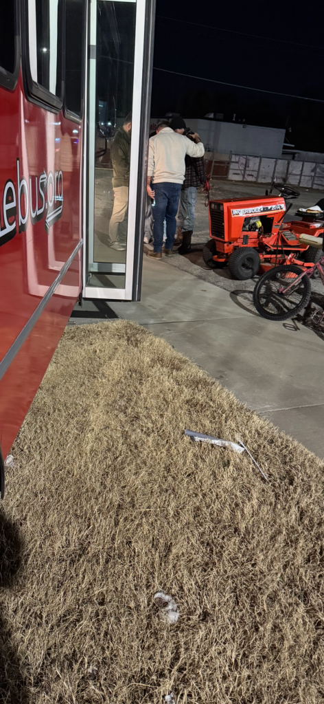 One more thing, we met a man who uses his riding lawn mower as transportation. He needed a jumpstart, and we were able to help him with the bus. Count your blessings. Don’t take anything for granted. He reigns! Matthew 11:28–30